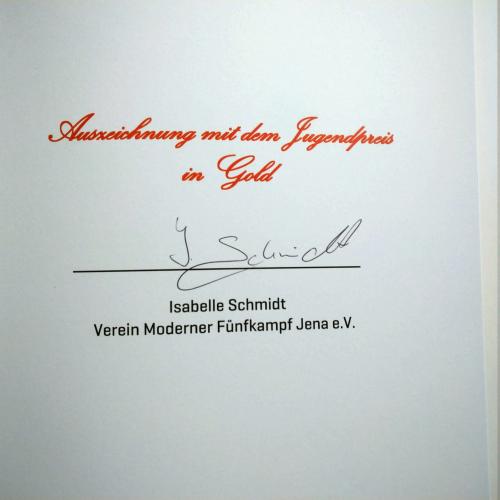 Vor Beginn des 11. Coupe de Coubertin hatten wir einen hohen Gast: Der Vorsitzende der Thüringer Sportjugend (Jugendverband des Landessportbundes Thüringen), Robert Fischer, zeichnete Isabelle Schmidt für ihre lange ehrenamtliche Tätigkeit (seit 2007!!) mit der höchsten Auszeichnung der Thüringer Sportjugend, dem Jugendpreis in Gold, aus. Glückwunsch und vielen Dank! Nachfolgend ein paar Bilder und das Video der Festrede des Vorsitzenden.